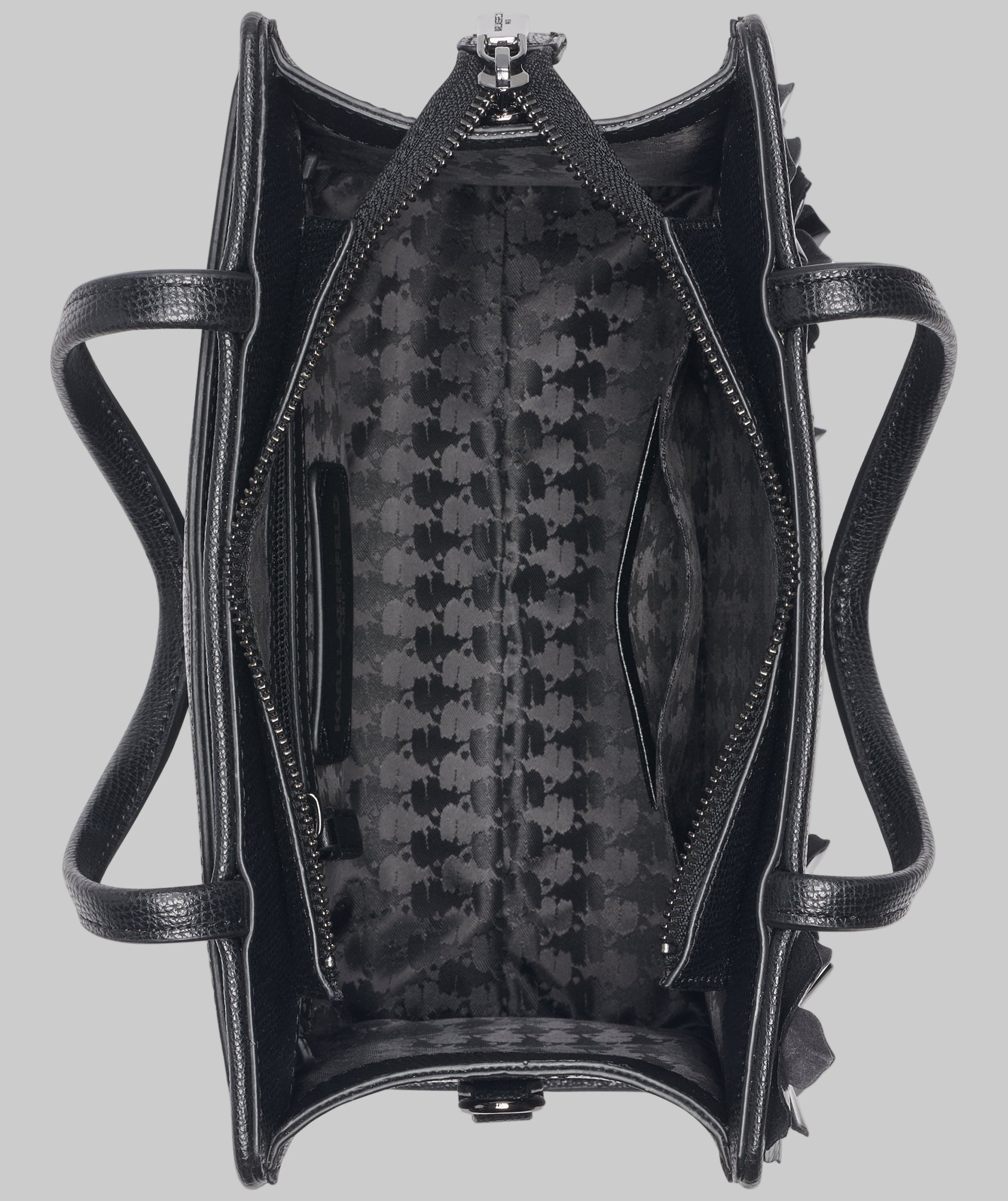 Exterior back slip pocket, interior front pocket and back zip pocket; non-detachable double handles; detachable shoulder strap; zip top fastening